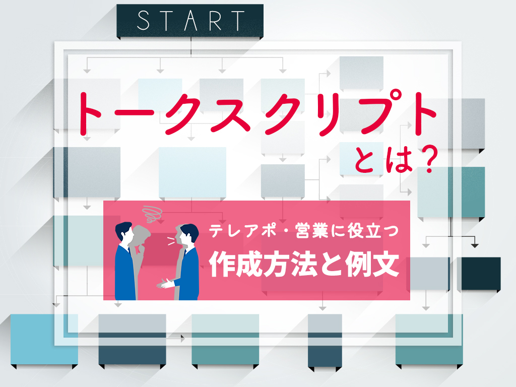 営業やテレアポの成功率を上げたい企業向けに、トークスクリプトについて解説します。トークスクリプトとは何か、テレアポや営業活動における重要性、作成方法などを説明したうえで具体的な例も紹介するので、成果を上げたい方は要チェックです。