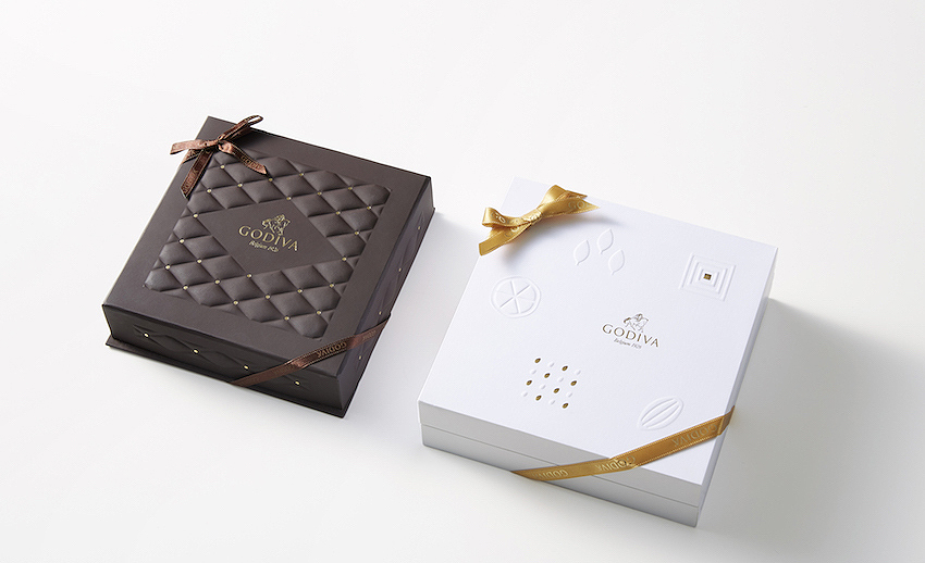 紙はしっとりとしたフィルムのような感触にこだわり、GODIVAらしさと高級感、さらに「大人かわいい」を表現できる色を、モックアップで検証しながら厳選。特注の紙を染め上げ、しっとりとした革のような質感に仕上げました。