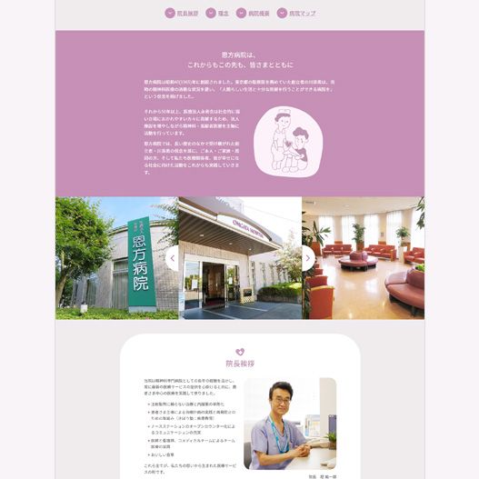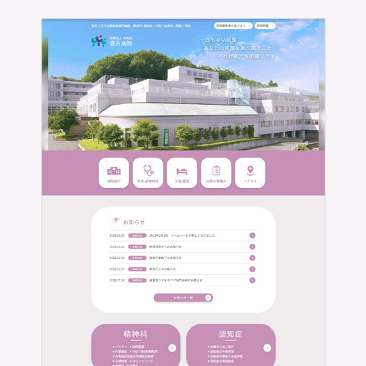 八王子にある精神科専門の恩方病院様のWEBサイトリニューアルをお手伝いしました。