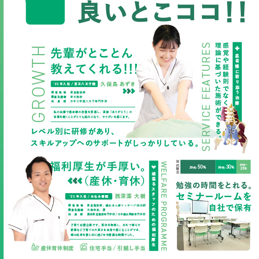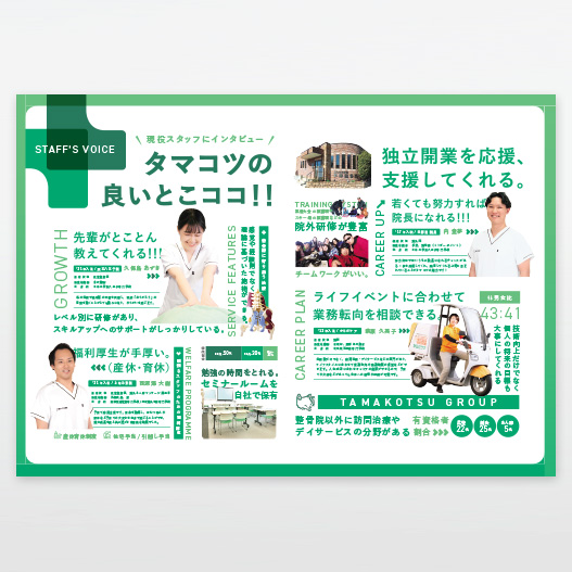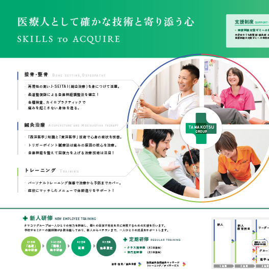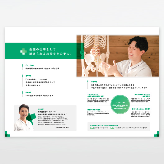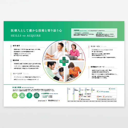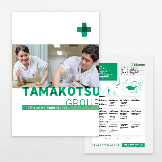鍼灸整骨院等を運営されている多摩鍼灸整骨院グループ様の採用案内パンフレット制作のご依頼をいただきました。
