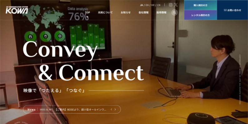 映像・音響機器の販売やレンタル、AVシステムの設計・施工を手がけ、機材選定から施工、オペレーションまでを総合的にサポートし、高品質なサービスを提供している企業。既存コーポレートサイトで更新性に課題を感じるMovable Typeから他のCMSへの乗り換えを希望されており、GrowGroupにてWordPressサイトとして全面リニューアルを実施した。