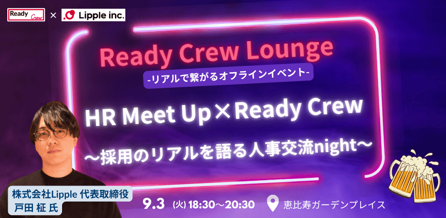 【9月3日(水)開催|無料・先着30名】HR Meet Up × ReadyCrew ~採用のリアルを語り合う、人事交流ナイト~