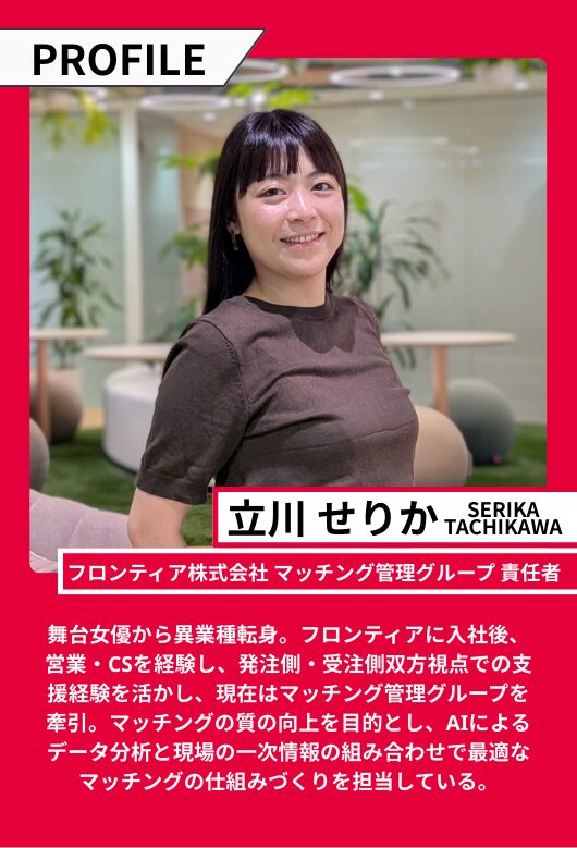 第2弾となる今回は、マッチング管理グループ(MMG)*2を率いる立川せりか氏*3に焦点を当てます。