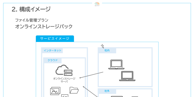 インターネットへ接続が可能な環境ならどこからでもファイルのアップロード・ダウンロードができるオンラインストレージを導入