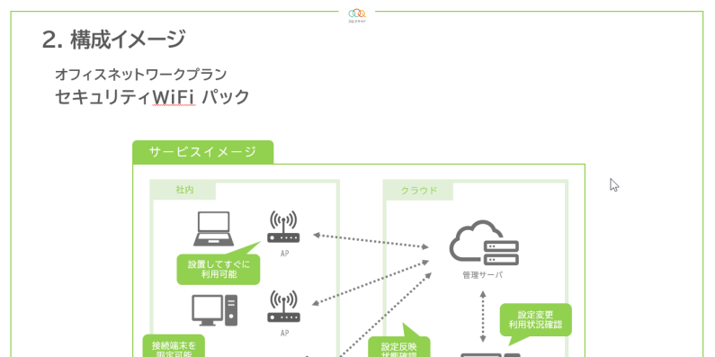 範囲内で無線LANのアクセスポイント導入をご対応いただけて嬉しかったです。予算的にも合わせやすかったため、大変助かりました。今後ともご協力いただければ幸いです。