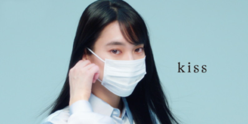 女性がマスクを外してその裏側を見せる印象的な動画広告を制作。 マスクにメイクの汚れがつきにくい=メイクがくずれにくいKissの特長を訴えた。