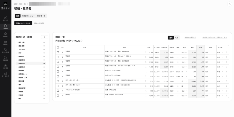 取引データを一元管理するシステム。見積書、納品書、請求書の自動作成を実現。