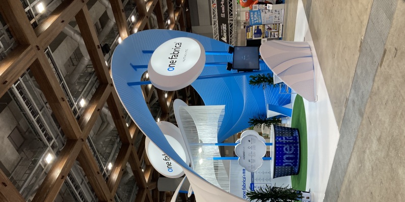 onefabrica認知度向上のために展示会に出展。曲線を多用し、他にないデザインのブースを実現。