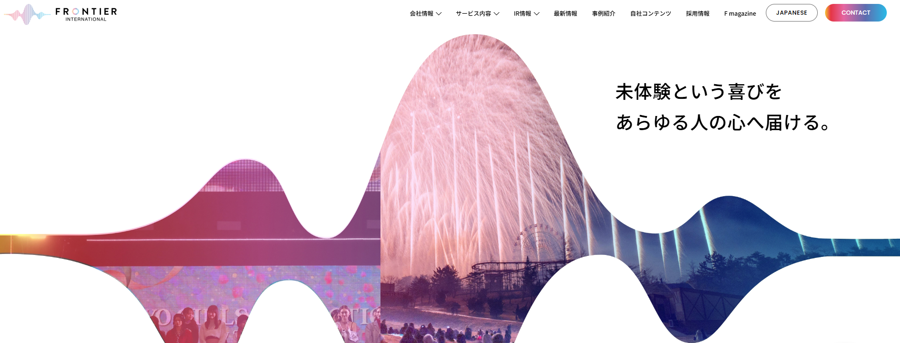 株式会社フロンティアインターナショナルは業種や開催場所(海外を含む)を問わずイベントやキャンペーンのブース制作、設置・撤去に対応しています。さらに、窓口業務や説明役派遣、クリエイティブ制作、リード獲得戦略の立案、来場者の属性データ分析などもワンストップで依頼可能です。自社の人的リソースが不足している場合におすすめの企業です。