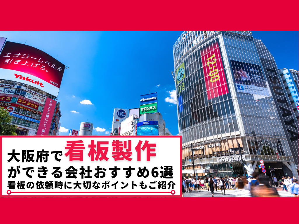 そこで本記事では、大阪府で看板製作を依頼できるおすすめの会社5社をご紹介します。看板製作を依頼する時に注意すべき大切なポイントもご紹介していますので、大阪で看板製作をご検討中の方はぜひご一読ください。