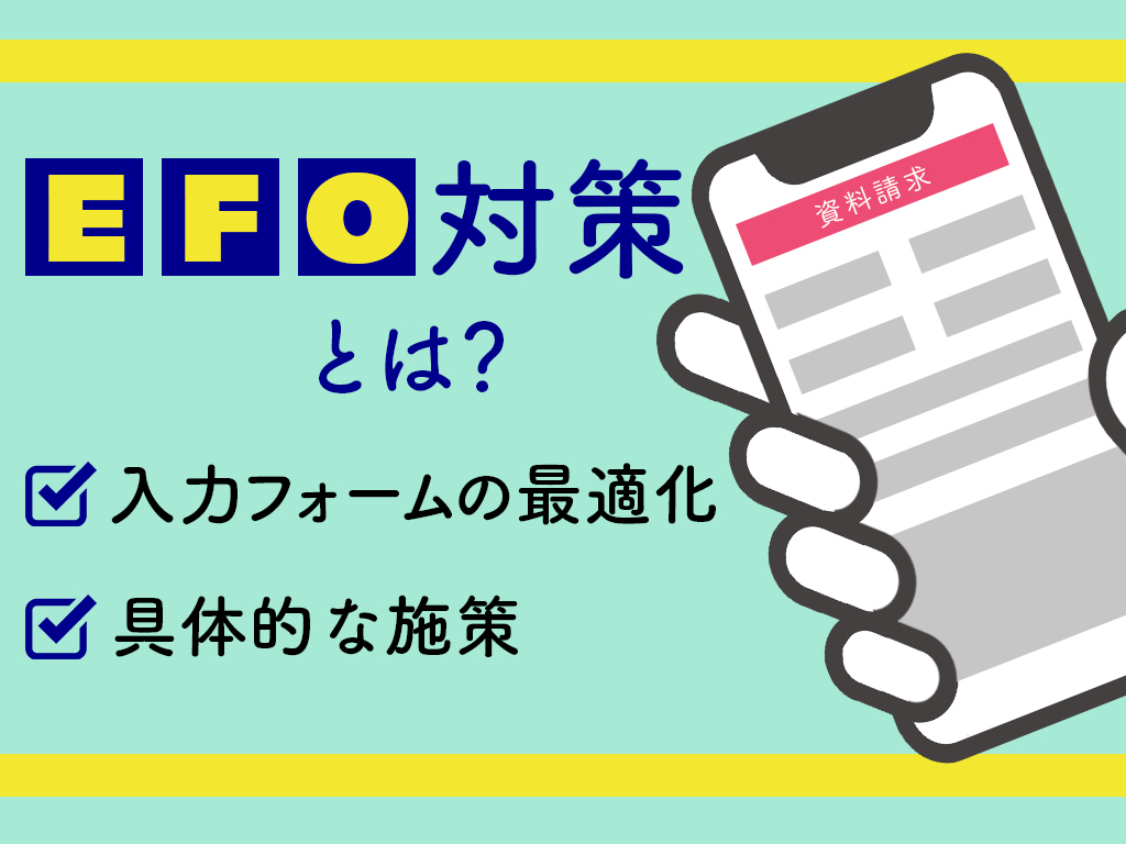 EFOとはEntry Form Optimizationの略であり、入力フォームの最適化を図るための施策です。問い合わせフォームや商品購入フォームにおいて、ユーザーがスムーズに入力作業ができるよう、さまざまな工夫を行います。