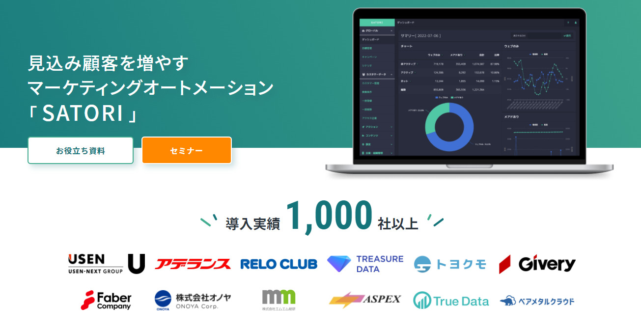 「SATORI」は1,000社以上の企業の導入実績を持つ純国産MAツールです。