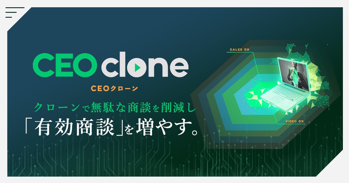 タッチスポット株式会社が提供している「CEO clone」は、社長やトップセールスのサービス説明がいつでもどこでも見ることができ、さらには質問や商談の予約までをその場でできるツールです。