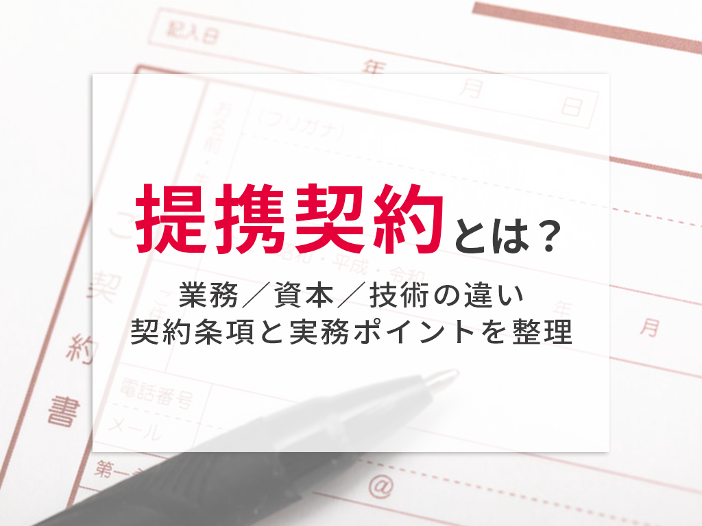 提携契約を正しく運用するために、業務・資本・技術提携の違い、検討すべき条項、雛形使用時のリスクを網羅的に解説。共同研究・ライセンス契約時に特有の実務ポイントも、一次情報をもとに実践的に紹介します。