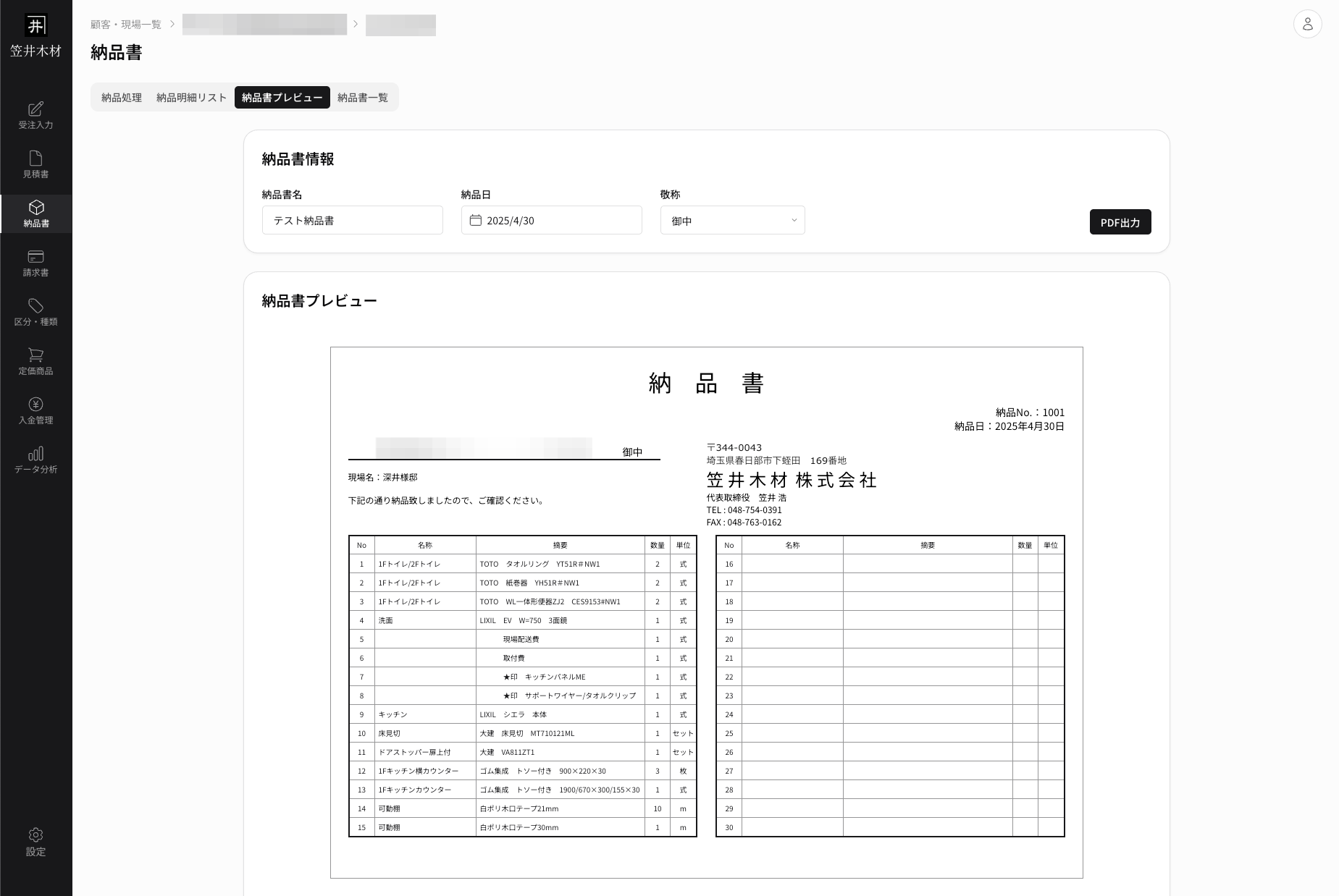案件管理システムによって、案件情報の管理から帳票出力までを連携して作成。