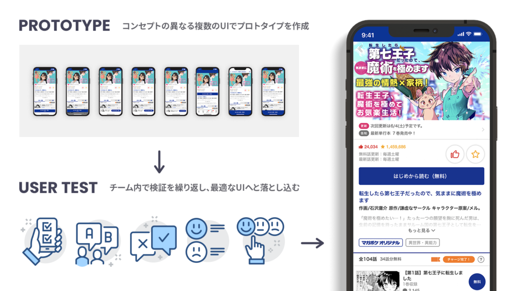 すでに多くのユーザーから親しまれているアプリのため、サービスのコンセプトと理想的なユーザー体験について再確認から開始。コンセプト別のプロトタイプを複数作成してユーザーテストを繰り返し、ベストな案を決定しました。また、デザインガイドラインやコンポーネントの整備を進めることで、運用の効率化と品質の向上も手がけました。見える部分のデザイン以外でもアプリのクオリティ向上に貢献できるよう、効率的な運用方法を検討しています。