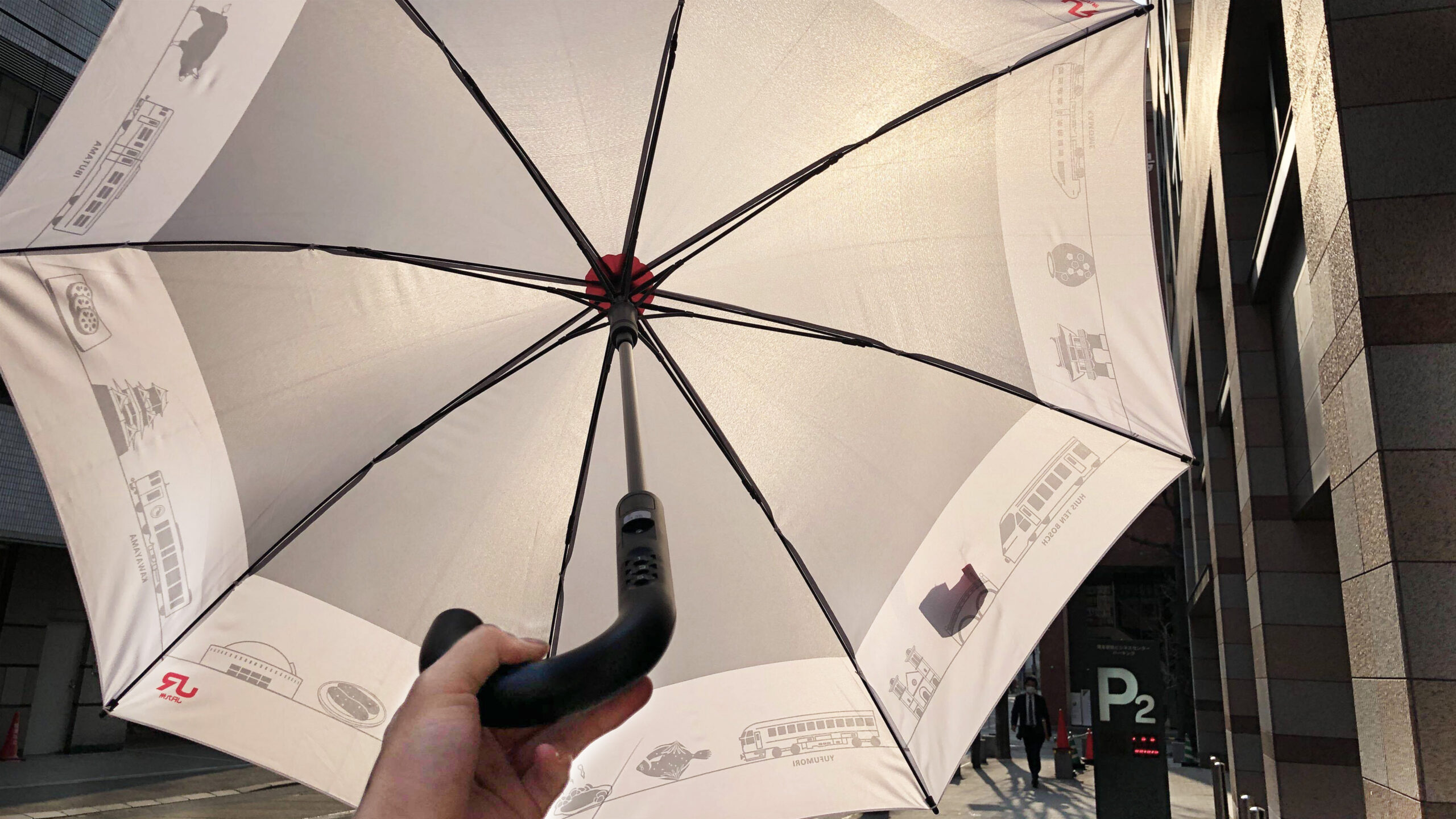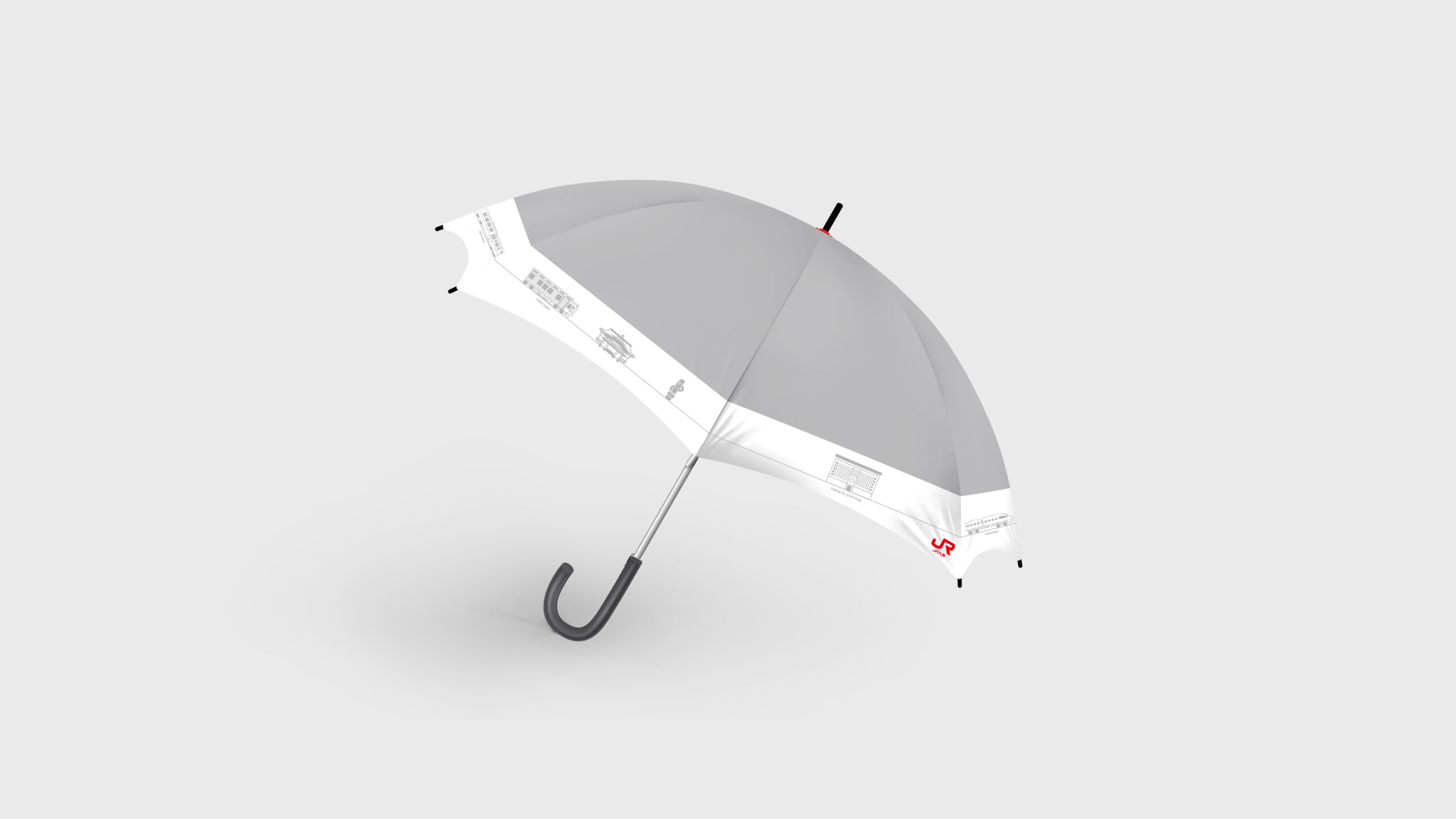 ジャック広告についてはダイレクトにユーザーが目に止まるよう訴求してほしいとのことだったので余計な要素は入れずシンプルに構成し、傘広告に関してはJR九州駅構内に設置するものなので各九州のそれぞれのエリアに傘の小間(こま)ごとにランドマークや名物などを横一列にイラスト・アイコン化しアイデアが素晴らしいとクライアント様からご満足いただけました。