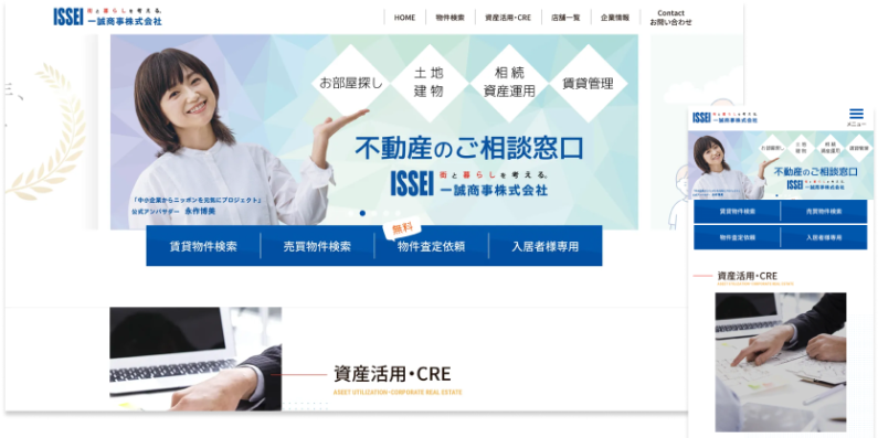 茨城県南で管理戸数20,000戸、11支店の展開をしている一誠商事株式会社様のサイトフルリニューアル。物件検索システムはSassサービスを利用されており、全体のブランドデザインからコーポレートサイトを担当。