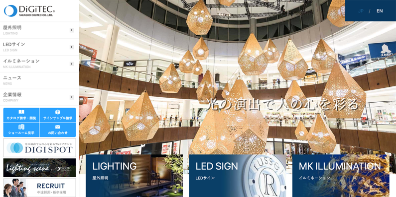屋外照明のリーディングカンパニーである、株式会社タカショーデジテック様のコーポレートサイトリニューアルを担当させていただきました。