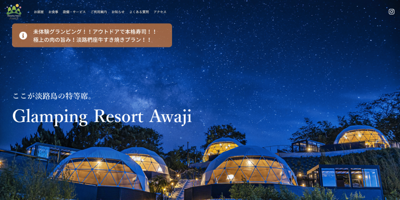 淡路島や琵琶湖周辺など関西を中心にリゾート開発を行っておられる同社のグランピング施設サイトの制作をご依頼いただきました。